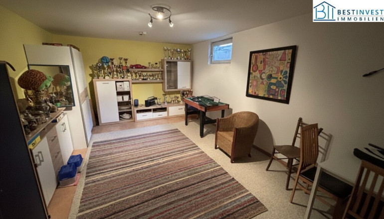 Die durchdachte Raumaufteilung sorgt für eine harmonische Wohnatmosphäre. Mit zwei Bädern und zwei WCs, aufgeteilt auf beide Etagen, sind auch größere Familien bestens versorgt. Das Kellergeschoß bietet sich als Homeoffice an.