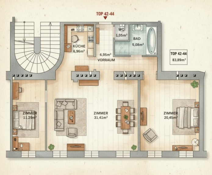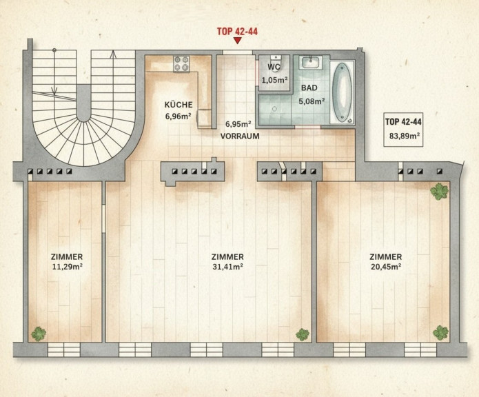Diese Etagenwohnung befindet sich im 7. Bezirk von Wien, genauer gesagt in der Neustiftgasse. Sie liegt im Westen der Stadt und bietet somit eine sonnige Ausrichtung. Die Umgebung ist geprägt von einer ruhigen und grünen Wohngegend, ideal für Menschen, die gerne in einer entspannten Atmosphäre wohnen.