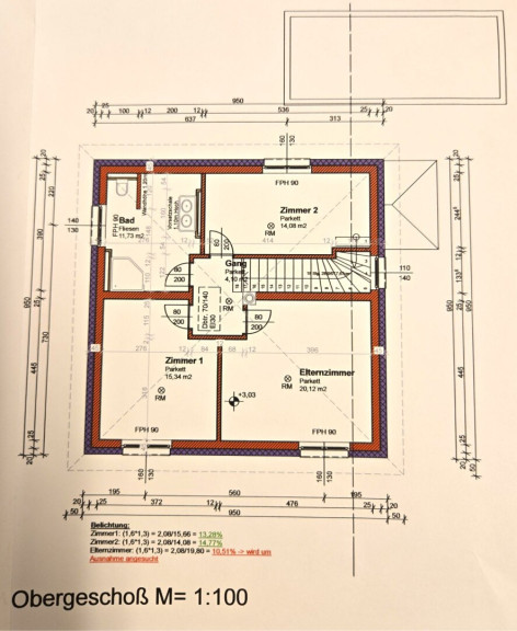 im Obergeschoß bestehend aus: Vorraum, Bad mit Dusche und WC, 3 Zimmer (zwischen 14m² - 20m²) - rund 594 m² Grundstück
