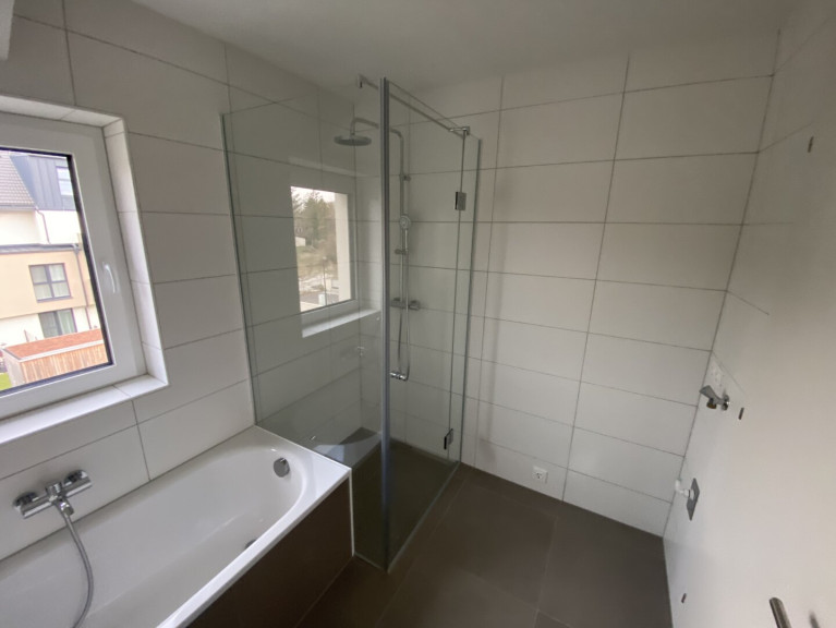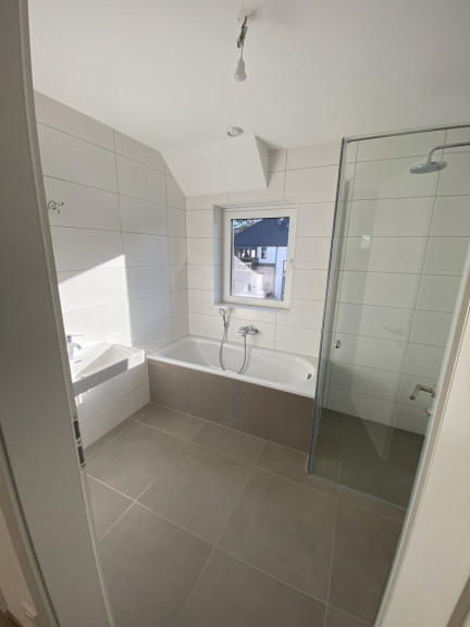 - Bad mit Badewanne, Waschmaschinenanschluss, Fenster, zeitlose Verfliesung