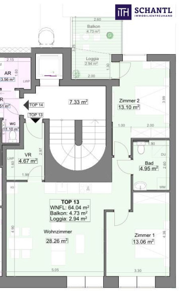 Wohnfläche: 64,04 m² + Außenfläche: 7,67 m²