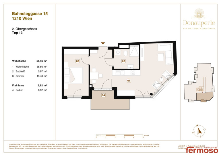 Im hochwertigen Neubauprojekt „Donau Perle“ in der Bahnsteggasse 15 erwartet Sie eine durchdacht geplante 2-Zimmer-Wohnung mit idealer Raumaufteilung und moderner Ausstattung. Diese charmante Einheit überzeugt durch ihre helle Wohnküche, den komfortablen Balkon und ein stimmiges Wohnkonzept – perfekt für Singles, Paare oder Anleger.