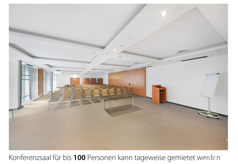 - Zusätzlich ein großer KONFERENZSAAL im EG für bis zu 100 Personen tageweise anmietbar