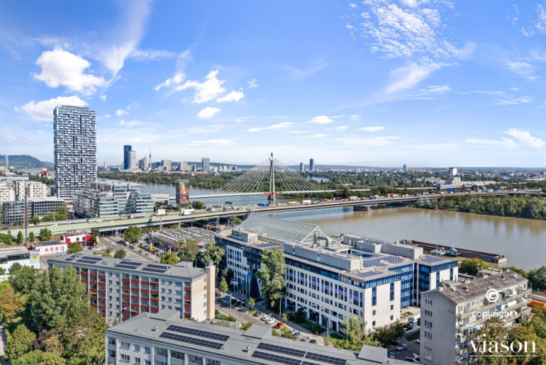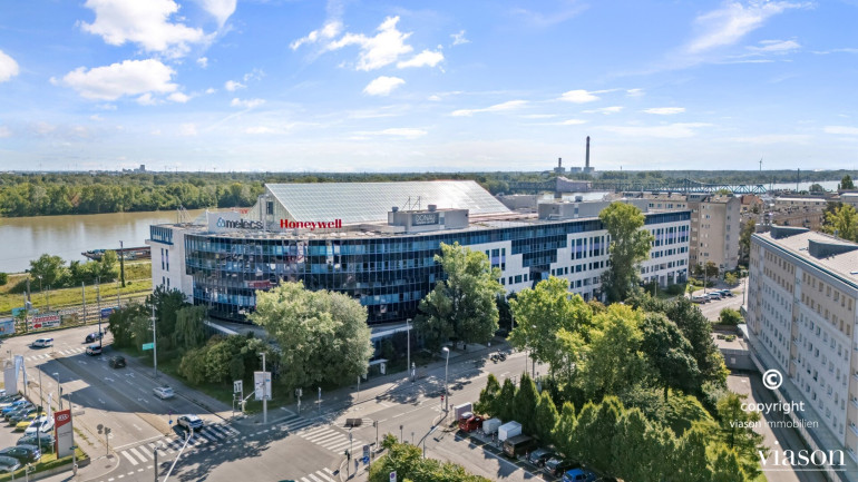 Das DONAU BUSINESS CENTER umfasst 6 Ebenen mit insgesamt ca. 22.000 m² Büro- und Geschäftsflächen und eine Tiefgarage im Haus.