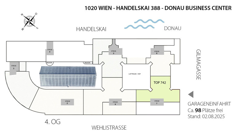 - LAGE:Handelskai 388 – 1020 Wien (Eingang Wehlistraße 299, 1020 Wien). Ausgerichtet Richtung Gilmagasse