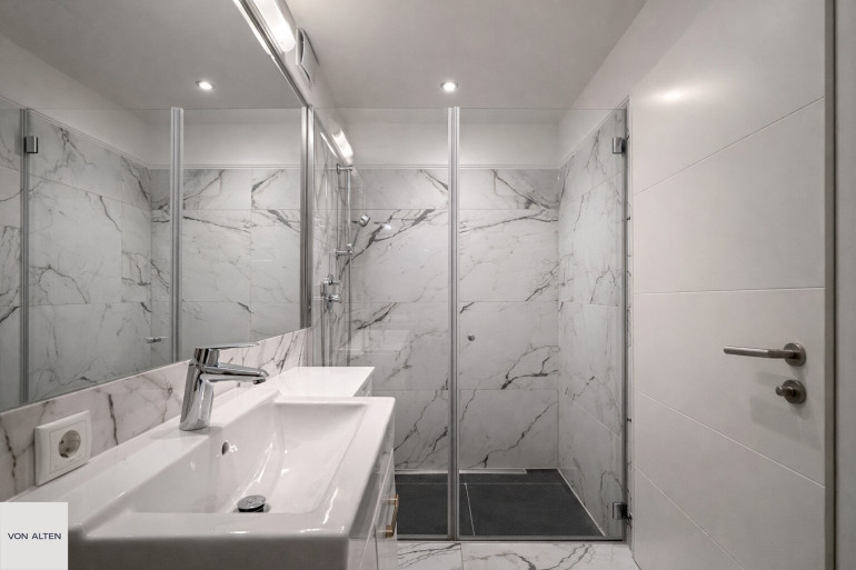 + Fliesen- und Marmoroberflächen in den Sanitärbereichen