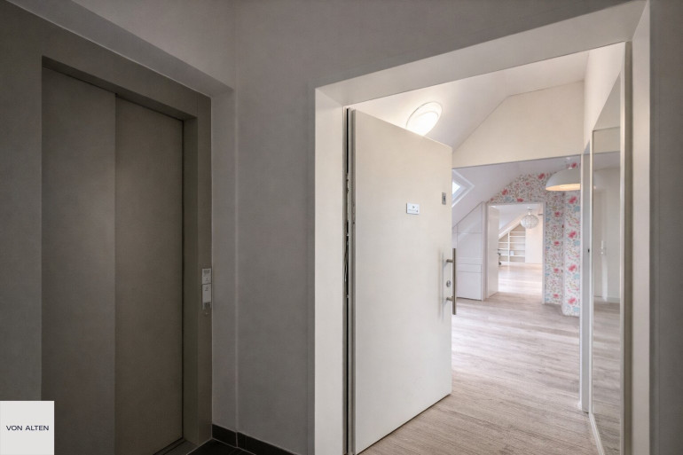 Diese Wohnung wird ebenfalls für den Verkauf angeboten. Diese hochwertig ausgeführte Dachgeschoss-Maisonette aus dem Jahr 2014 erstreckt sich über zwei Ebenen. Die Wohnung verfügt über zwei eigenständige Zugänge – im 1. Dachgeschoss mit Liftanbindung sowie im 2. Dachgeschoss mit direktem Liftzugang. Erstmalig im Jahr 2016 bezogen, präsentiert sich die Immobilie in einem sehr gepflegten Zustand.