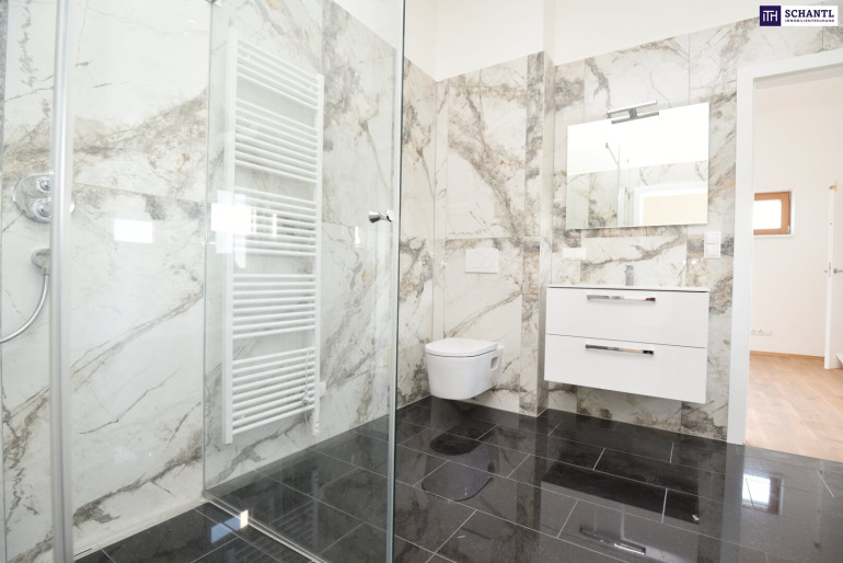 - ein drittes Schlafzimmer mit 18,73m² und eigenem Badezimmer mit 7,69m², Fenster, Dusche und WC und ebenfalls Zugang zur SPA-Terrasse mit 57,95m²