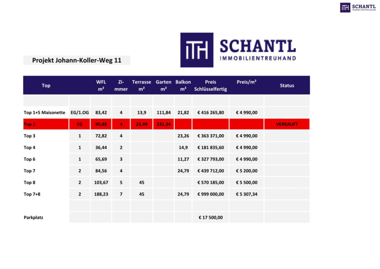 - Parkplatz: € 17.500,00 brutto (Parkmöglichkeit auch in der Sackstraße vorhanden)