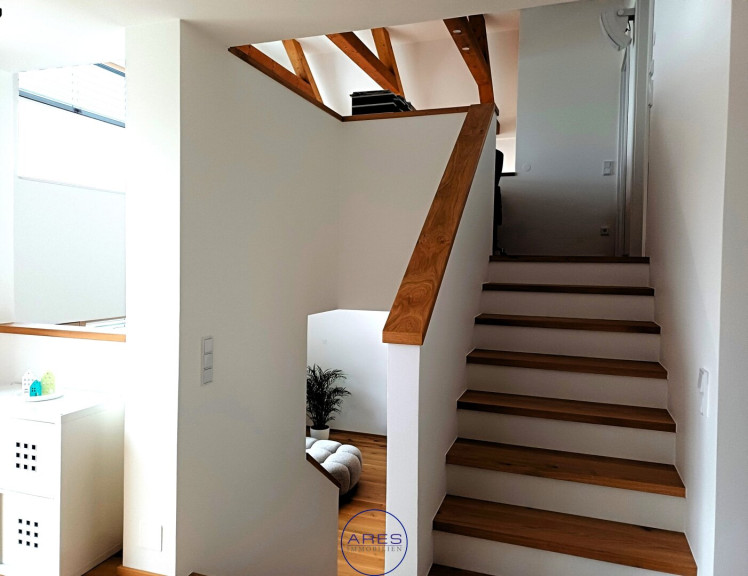 Die soeben erst abgeschlossene Generalsanierung bzw. der teilweise Umbau des lichtdurchfluteten Hauses wurde mit viel Liebe zum Detail aufwendig geplant und bestens ausgeführt. Großzügige Räume (Küche, Esszimmer mit Ausgang auf die Terrasse, Wohnzimmer, 3 Schlafzimmer, offener Büroraum auf der Galerie, 2 Bäder, Schrankraum, Nebenräume), Parkettböden, helle freundliche Einbauküche mit hochwertigen Markengeräten, Wandheizung in der Dusche und hinter Handtuchhaltern für behaglichen Komfort, Bose-Soundanlage im ganzen Haus steuerbar, elektrisch bedienbare Rollläden; Gartentor, Doppel-Garagentor und Türklingel sind via Mobiltelefon steuerbar ... Herz was begehrst du mehr?!