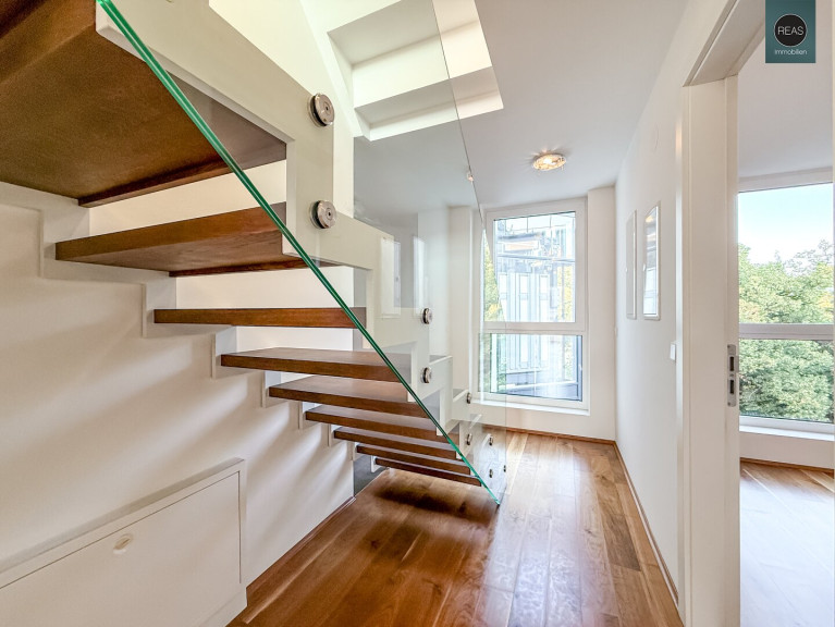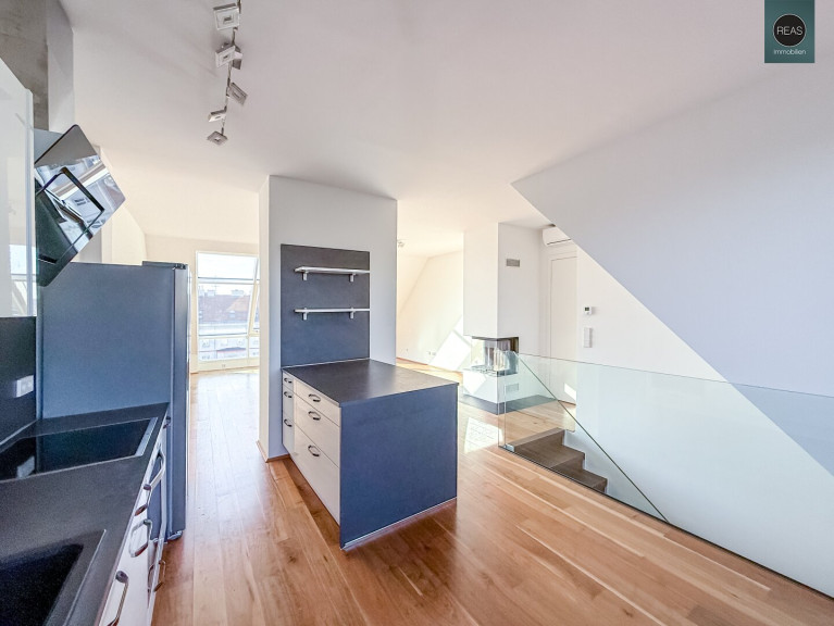 Zum Verkauf gelangt eine moderne Dachgeschoss - Maisonette - Wohnung in der Leopoldstadt (1020 Wien). Das Luxusapartment verfügt über 2 Terrassen und einen offenen Kamin im Wohnbereich!