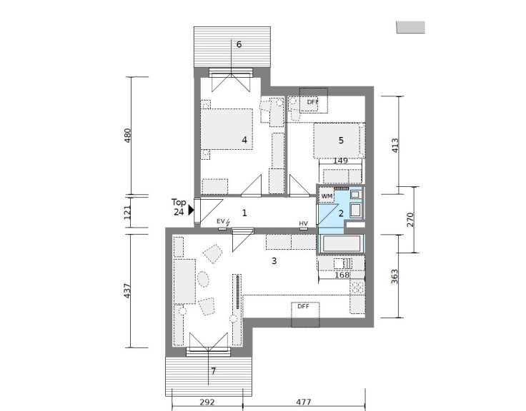 Raumaufteilung: TOP 24, 2. Dachgeschoss