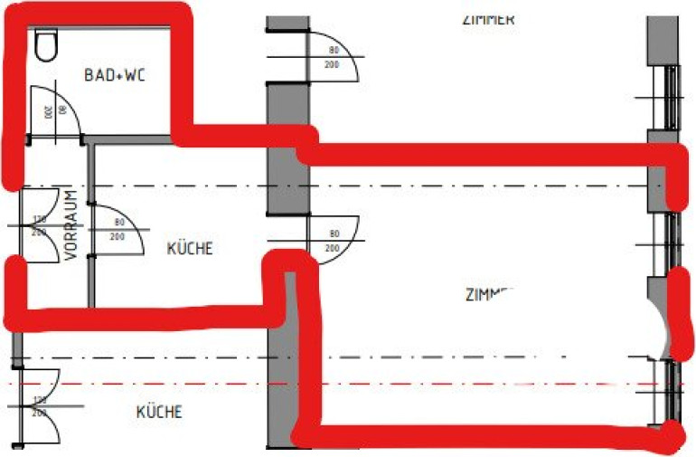 - Vorraum, 1 Zimmer, Küche, Bad, WC
