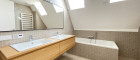 Zeitgemäße Haustechnik sorgt für angenehmes Wohnen auf hohem Niveau. Fußbodenheizung und Klimatisierung gewährleisten ein komfortables Raumklima zu jeder Jahreszeit. Die durchdachte Planung ermöglicht eine effiziente Nutzung aller Wohnbereiche trotz der Dachgeschosslage.