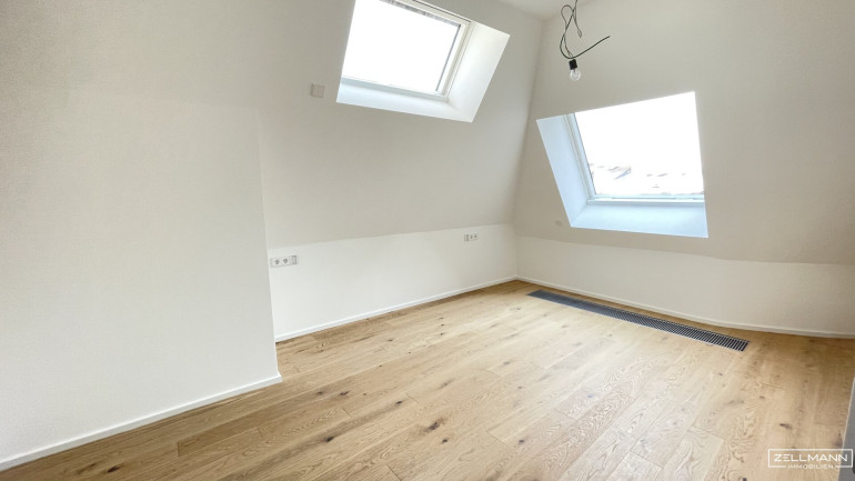 Das ruhig gelegene Schlafzimmer bietet ausreichend Raum für Rückzug und Erholung. Die teilweise vorhandenen Dachschrägen verleihen der Wohnung zusätzlichen Charakter und unterstreichen den exklusiven Dachgeschossflair.