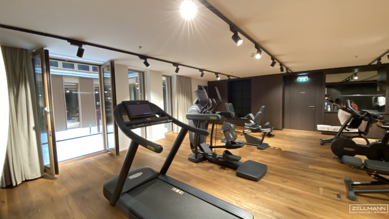 Ein voll ausgestattetes Fitnesscenter im Haus ermöglicht Training unabhängig von Tageszeit oder Wetter. Moderne Geräte, großzügige Fensterflächen sowie angeschlossene Umkleide- und Sanitärbereiche schaffen eine angenehme Trainingsatmosphäre. Ergänzend stehen separate Räume für Yoga, Massage oder Personal Training zur Verfügung.