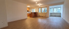 offene Küche mit sehr großem Wohn- und Essbereich sowie direktem Zugang zum Balkon mit Grünblick