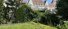zwei ruhige Schlafzimmer mit Blick auf ein begrüntes Dach