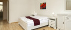 Das Hauptschlafzimmer verfügt über ein King-Size-Doppelbett. Ein großer Spiegelschrank im Stile Alt-Wien bietet ausreichend Stauraum. Kommoden vervollständigen die großzügige Einrichtung. Bettwäsche und Bettwaren sind vorhanden.