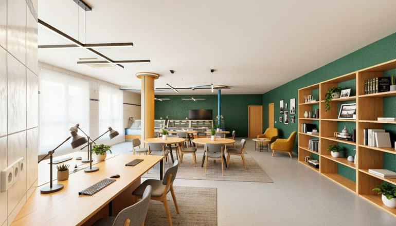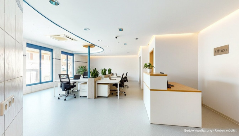 Bei langfristiger Anmietung kann – nach Abstimmung – ein Umbau/Umnutzung in ein modernes Office-Layout erfolgen (z. B. Rückbau/Abdeckung der Thekenanlage, neue Raumzonierung, Besprechungsbereich, Teeküche/Office-Pantry, Akustik, Beleuchtung, IT/Netzwerk). So entsteht eine Fläche, die nicht „von der Stange“ ist, sondern Ihre Prozesse unterstützt.
