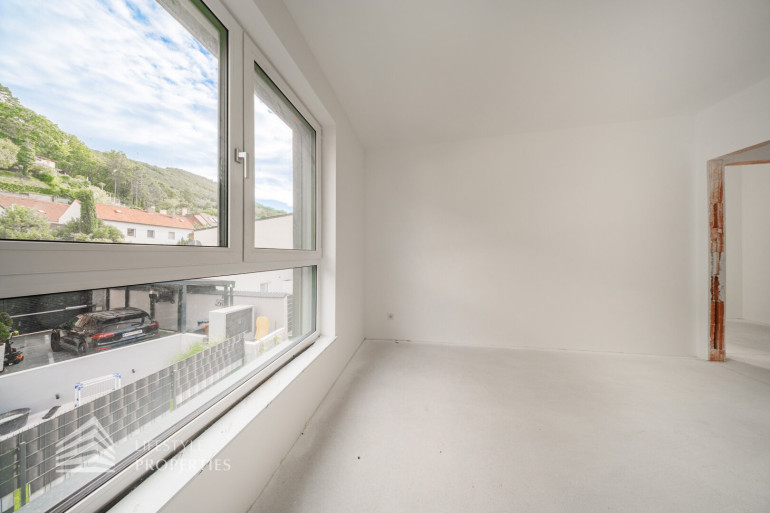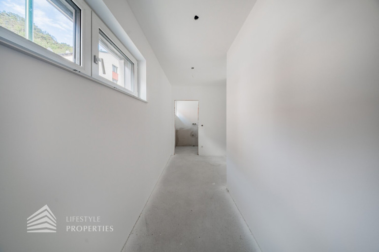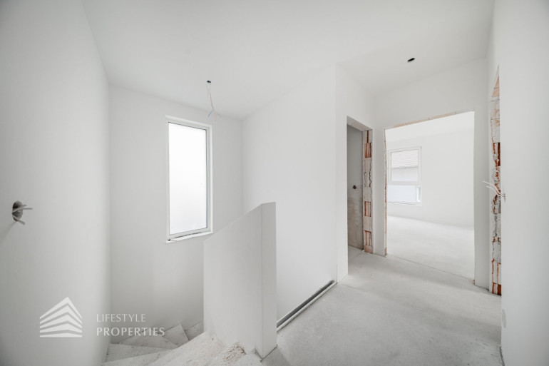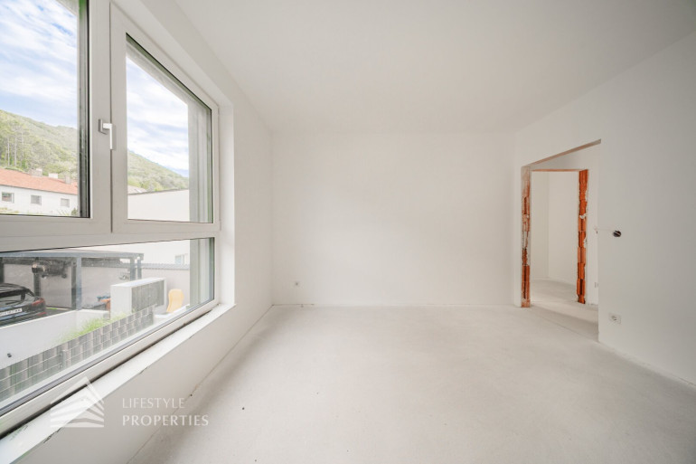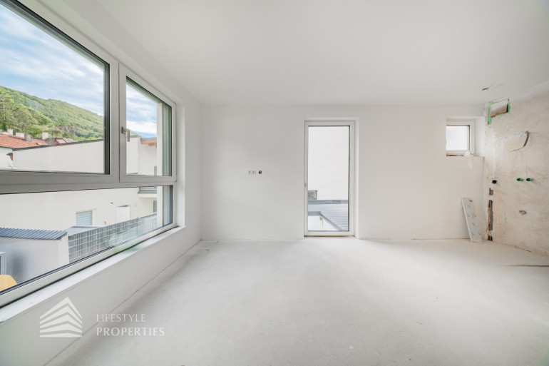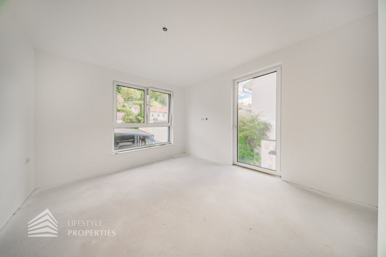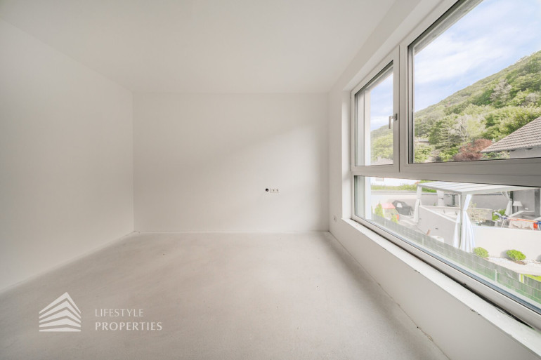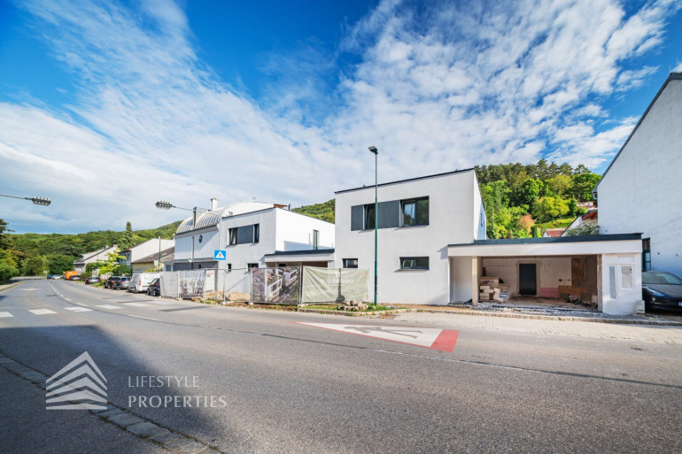 Dieses stilvolle, moderne Wohnhaus verbindet zeitlose Architektur, hochwertige Materialien und innovative Haustechnik zu einem einzigartigen Wohnambiente. Großzügige Fensterflächen durchfluten die Räume mit Tageslicht, während die private Dachterrasse, die sonnige Terrasse im Erdgeschoss und der direkt zugängliche Garten ungestörte Ausblicke ins Grüne bieten und zu entspannten Stunden im Freien einladen. Ein Carport für zwei Fahrzeuge, optional kann auf Wunsch eine geschlossene Garage errichtet werden, Smart-Home-Steuerung sowie ein App-gesteuertes Alarmsystem sorgen für höchsten Komfort und Sicherheit. Natur, Stil und modernste Technik treffen hier harmonisch aufeinander und schaffen ein exklusives Zuhause, nur wenige Kilometer von Wien entfernt, mit rascher Anbindung an die Innenstadt und die schönsten Naherholungsgebiete des Wienerwaldes.