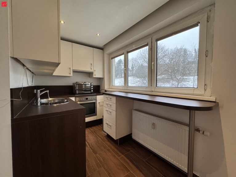 Die L-förmige Küche ist funktional integriert und verbleibt ebenso in der Wohnung wie der Kleiderschrank im Schlafzimmer – ein echter Mehrwert für den sofortigen Einzug. Das Schlafzimmer ist großzügig geschnitten, bietet ausreichend Platz, um bei Bedarf einenHomeoffice-Bereich abzutrennen. Durch die nordöstliche Ausrichtung bleibt es auch im Sommer hier angenehm kühl; zusätzlich sorgen außenliegende Jalousien für optimalen Sonnen- und Sichtschutz.