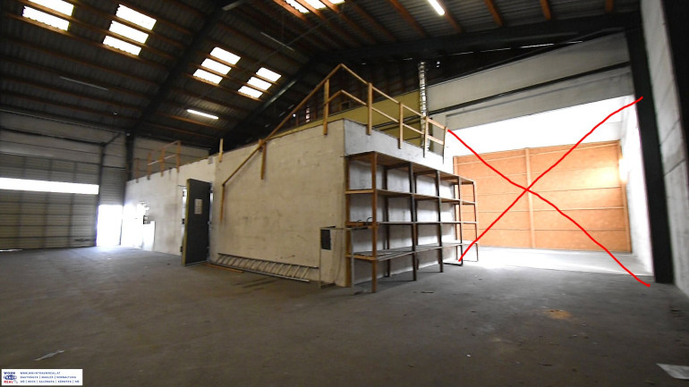 "Halle 2-B" bietet eine große, freie Fläche + 2 abgetrennte Räumlichkeiten mit weiterem Lagerraum in Form einer Galerie am Dach der beiden Räume (siehe Bilder 1+2+3).