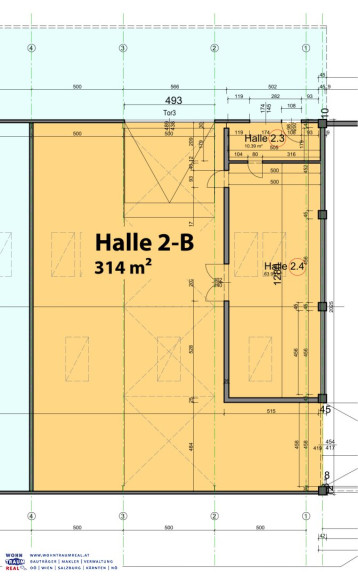 Die angegebenen Maße sind nur ein Basiswert zur Vermietung. Sie benötigen mehr Platz? Kein Problem! Die räumliche Trennung von der gesamten "Halle 2" (siehe Bild 4) wird erst nach gemeinsamer Abstimmung und abgeschlossenem Mietvertrag errichtet, bis dahin besteht Flexibilität für Ihre Anforderungen. Der aktuell offene Zugang zur nebenan befindlichen "Halle 1" wird geschlossen (siehe Bild 2).