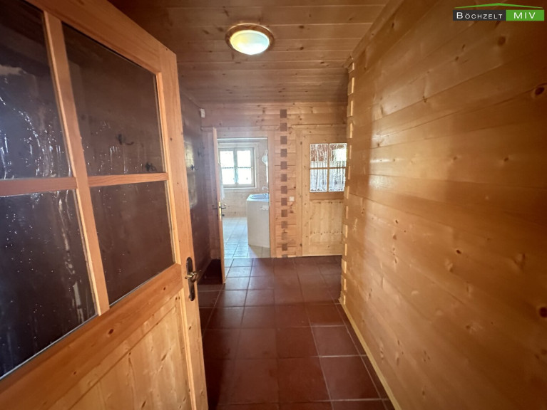 Das Haus wurde 1998 als Blockhaus errichtet. Im Kellergeschoss stehen Ihnen auf knapp 144 m² verschiedenste Räumlichkeiten zur Verfügung. Neben der Lagerung können hier auch Hobbyräume realisiert werden. Im Heizraum gibt es eine Sauna zur Entspannung nach stressigen Tagen. Das Kellergeschoss lässt sich sowohl über das Erdgeschoss, als auch über einen eigenen Kellerabgang erreichen. Das Erdgeschoss besteht aus 2 Wohnungen mit separaten Eingängen, wobei diese mit einer Tür verbunden sind. Die kleine Garconnieere besteht aus einem Vorraum, einem Zimmer, sowie einem kleinen Bad. Die andere Wohneinheit besteht aus einem Vorraum, Flur, einem Badezimmer mit Badewanne und WC, dem Schlafzimmer samt Schrankraum, dem großen, offenen Wohn-, Ess- und Küchenbereich samt Speisekammer und einem Büro bzw. Kinderzimmer mit Festbrennstoffofen. Der unausgebaute Dachboden bietet noch reichlich Platz, um Ihrer Kreativität freien Lauf zu lassen.