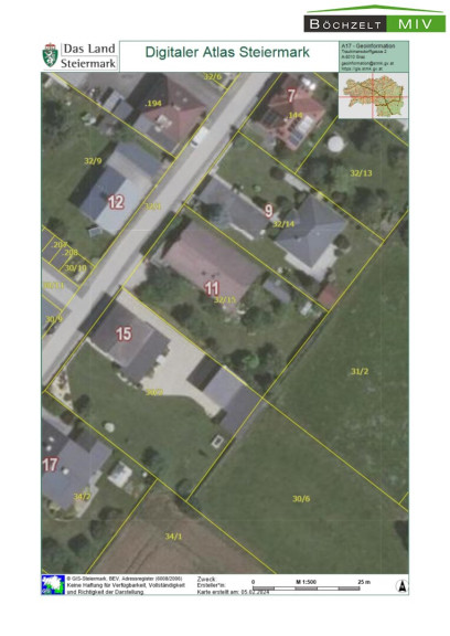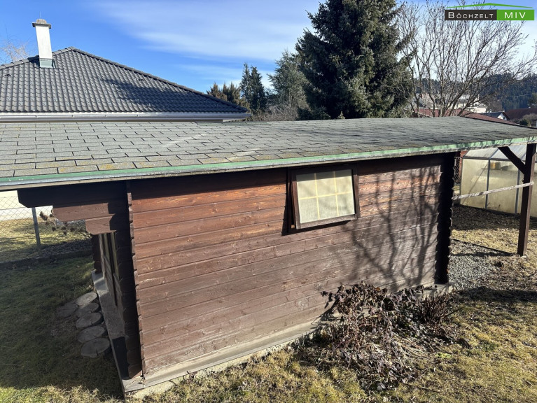 Auch die Ausstattung lässt keine Wünsche offen: Die eingebaute Alarmanlage bietet Sicherheit für Sie und Ihre Familie. Im Keller gibt es neben WC- und Duschanlage auch eine Sauna, die zum Entspannen einlädt. Überdies verfügt dieses Objekt über eine zentrale Staubsaugeranlage. Das Büro bzw. Kinderzimmer lässt eine Beheizung über den Festbrennstoffofen zu, generell wird mittels Gaszentralheizung geheizt. Die Holzfenster verfügen über außenliegeden Sonnenschutz in Form von Rollläden. Zur Gartenbewässerung und zum Betrieb der WC-Anlagen kann überdies das Wasser aus dem eigenen Brunnen verwendet werden. Der gepflegte Garten weist neben einigen Bäumen auch eine Gartenhütte zur Lagerung von Geräten und Holz auf. Vom Wohnbereich erreichen Sie die (teilweise) überdachte Terrasse.