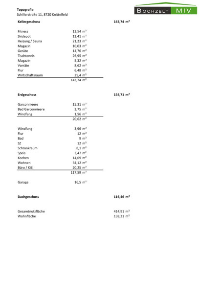 - ca. 414,91 m² Gesamtnutzfläche (inkl. Garage, Keller, Dachboden)