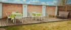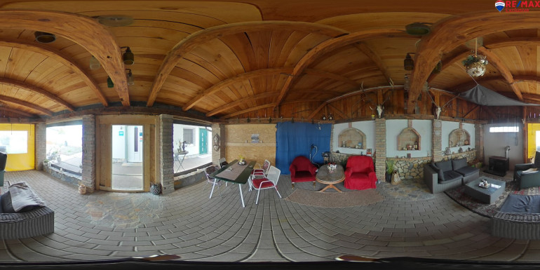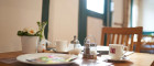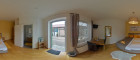 - Frühstücksraum und gedeckter Sitzplatz