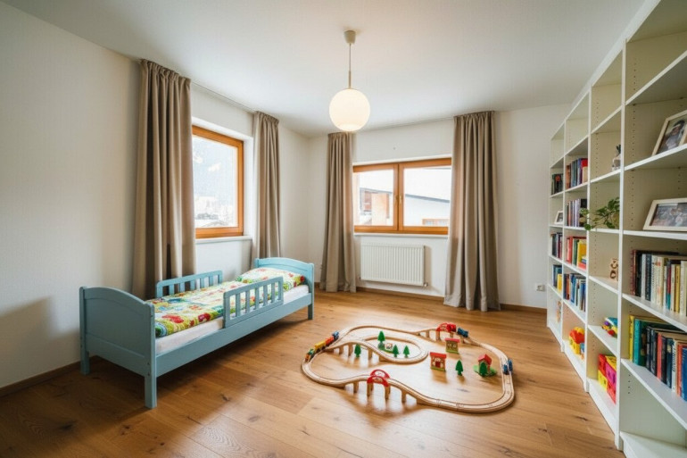 Mit insgesamt 5 lichtdurchfluteten Zimmern bietet diese Immobilie ausreichend Platz für individuelle Gestaltung und Rückzugsmöglichkeiten. Die durchdachte Raumaufteilung sorgt dafür, dass jedes Familienmitglied seinen eigenen Rückzugsort findet, während der offen gestaltete Wohnbereich einladend für gesellige Abende ist.