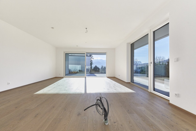 Ein Kronjuwel der Wohnung ist die 35,24m2 große Terrasse, welche Ihnen einen weitreichenden Blick auf das See- und Bergpanorama des Salzkammerguts bietet. Für optimale Privatsphäre sorgt Ihr Outdoor-Vorhang, der sich durch eine durchegehenden Schiene perfekt an die Brüstung schmiegt.