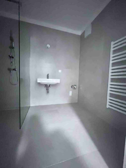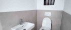 • Großformatige Fliesen in den Sanitärbereichen.