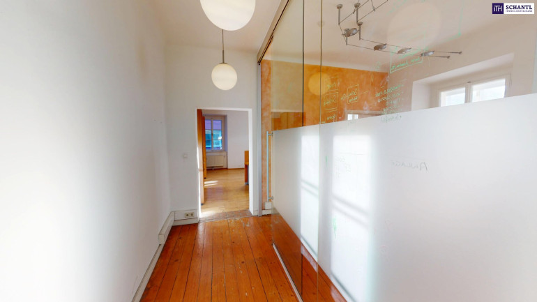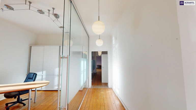 Diese stilvolle Gewerbeimmobilie bietet auf 150,60 m² Nutzfläche eine einzigartige Kombination aus historischem Charme und moderner Funktionalität. Schöne Holzböden (Parkett), hohe Decken und großzügige Räume schaffen eine repräsentative und zugleich angenehme Arbeitsatmosphäre – perfekt geeignet für Büros, Kanzleien oder Praxen.