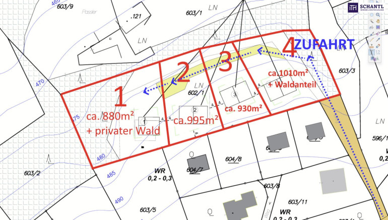 ca. 1.010 m² Baufläche inkl. steiler Waldstreifen (nur eingeschränkt nutzbar)