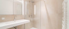 Offen geschnittene Grundrisse laden zur Geselligkeit ein, edle Naturholzböden mit langen Dielen verleihen dem Raum zusätzliche Großzügigkeit. Das Smart-Home System steuert das Zuhause auf Knopfdruck: Licht, Jalousie bis hin zur Heizung und Kühlung lassen sich hier koordinieren. Im Bad stehen gleich drei Ausstattungslinien mit unterschiedlichem Feinsteinzeug zur Auswahl: Der handgefertigte Charme von Marrazzis „Rice“, die unvergängliche Schönheit von Florims „Timeless“ Kollektion und die naturbelassene Anmutung der Serie „Pietre di Sardengna“ von Casalgrande Padana. Je nach Ausstattungslinie variieren auch Materialien und Farbe von Armatur, WC, Drückerplatte und Sprossenheizkörper.