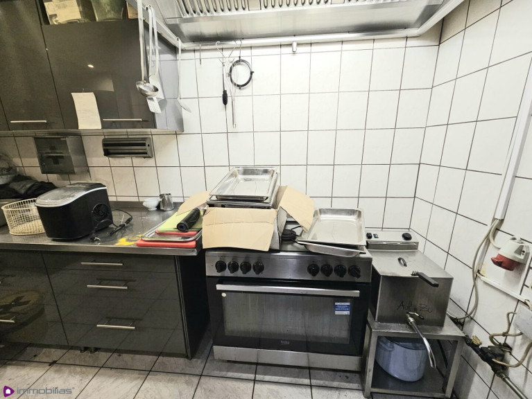 Vorhanden sind: Kühlschrank, Tiefkühlschrank, Küchenmaschine, Registrierkasse, Faschiermaschine, Herd, Geschirrspüler, Eiswürfelautomat, Kaffeemaschine, Radio, Mikrowelle, Küchenschränke, Tische, Sessel, Geschirr in ausreichender Menge