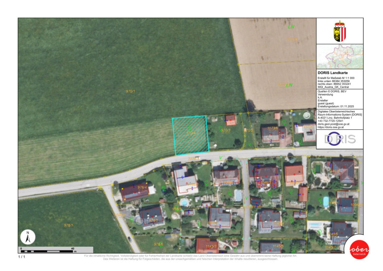Dieses besondere Grundstück in leicht abfallender Südwestausrichtung in ruhiger Lage mit sehr guter Anbindung (Bus, Bahn, Individualverkehr) bietet einerseits eine sichere Siedlungssituation und andererseits einen Blick ins Ferne und Grüne auf umliegende Wiesen- und Wälder. Im Norden und Westen grenzt das Grundstück an landwirtschaftliche Weideflächen, im Süden verläuft die Gemeindestraße und im Osten besteht ein Grundstück mit Gartenhaus. Gegenständliches Grundstück weist eine Bauland Wohngebiets-Widmung (Ausweisung geogene Risikozone Typ A) mit Baulandsicherungsvertrag auf und kann laut den Richtlinien der OÖ Bauordnung bebaut werden. Das Grundstück ist voll aufgeschlossen - die Aufschließungsgebühren wurden entrichtet. Bei Bebauung sind entsprechende Anschlussgebühren zu bezahlen.