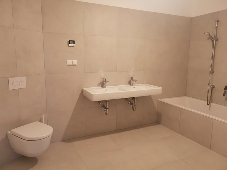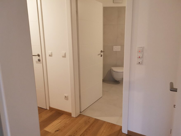 Diese Wohnung liegt im ersten Obergeschoss und verteilt sich auf ca. 85 m². Dazu gehört eine Balkonfläche von ca. 15 m². Der geräumige Vorraum bietet ausreichend Platz für eine großzügige Garderobe und kann vom Flur in die weiteren Räume gut abgetrennt werden. Von dort aus gelangen Sie in die weiteren Räumlichkeiten der Wohnung. Das Badezimmer mit Badewanne und WC bietet Raum für individuelle Gestaltungsmöglichkeiten. Die Haupträume dieser Wohnung ermöglichen aufgrund eines hervorragend gestalteten Wohnkonzepts und den angeschlossenen Freiflächen viel Platz zum persönlichen Entfalten sowie einen exklusiven Wohnkomfort durch großzügigen Belichtungsflächen. Neben 2 Schlafzimmern, verfügt die Wohnung über einen großzügigen Wohnbereich mit einer offen angeschlossenen Küche. Zusätzlich bietet die Wohnung ein separates WC mit Handwaschbecken und 2 Abstellräume. Der im Eingangsbereich gelegene Abstellraum kann auch gut als Garderobe genutzt werden.Die Wohnung ist mit hochwertigen Fliesen, Parkett, Sanitär, einer vollausgestatteten Einbauküche und einem modernen Sonnenschutz ausgestattet. Ebenfalls inkludiert ist ein Kellerabteil. 1-2 Parkplätze können zusätzlich angemietet werden. Bezugsfähig ist die Wohnung ab April 2026.