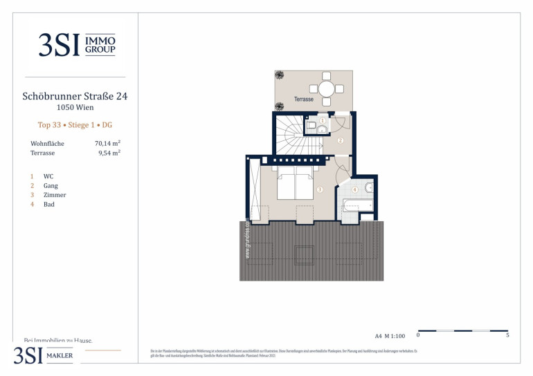 Diese moderne 2-Zimmer-Dachgeschosswohnung in 1050 Wien bietet Ihnen auf ca. 70m² nicht nur einen luxuriösen Wohnstandard, sondern auch eine attraktive Lage mit sehr guter Anbindung an das Wiener Stadtleben. Die Wohnung befindet sich in einem Top-Zustand und besticht durch die moderne und hochwertige Ausstattung. Der edle Eicheparkettboden sorgt für eine warme Atmosphäre in den Wohnräumen, das großzügige Bad ist mit hochwertigen Materialien ausgestattet und verfügt über eine moderne Dusche. Der schöne Ausblick über die Dächer Wiens und der komfortable Zugang zur Terrasse machen diese Wohnung zu einem besonderen Wohnjuwel. Ideal für Paare und Singles, die eine außergewöhnliche Immobilie suchen.