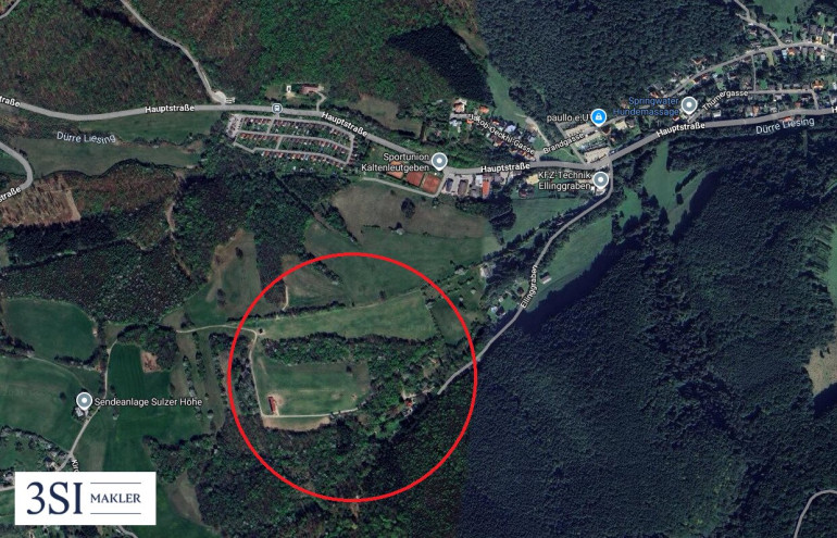 Zum Verkauf steht ein außergewöhnliches Entwicklungsgrundstück in idyllischer Lage von Kaltenleutgeben, im grünen Ellinggraben. Das Gesamtgrundstück umfasst 12.884 m², wovon 7.153 m² als Bauland gewidmet sind. Die Widmung erlaubt eine Nutzung für Hotel, Freizeit und Erholung, wodurch sich vielfältige Projektmöglichkeiten eröffnen.
