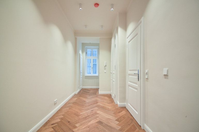 Der Zugang erfolgt über eine Sicherheitstüre mit 5-fach-Verriegelung (WK 3) in ansprechender Alt-Wien-Optik. Dahinter empfängt Sie ein großzügiges Vorzimmer, das ausreichend Platz für eine Garderobe bietet und ein angenehmes Ankommen ermöglicht.