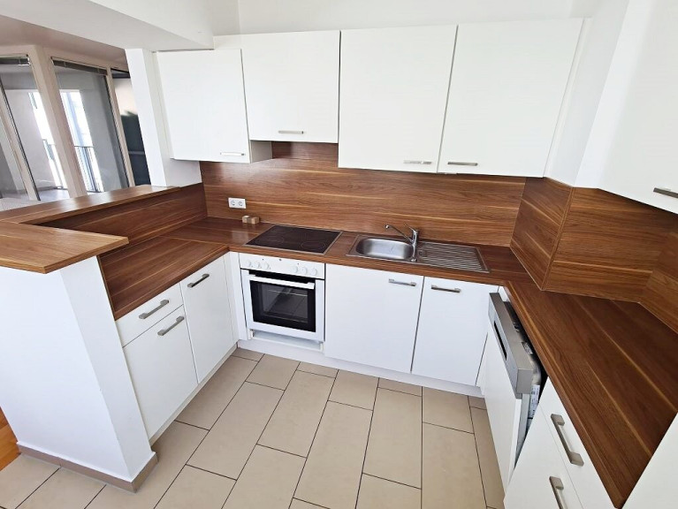Vorzimmer, Wohn/-Esszimmer mit offener Küche, 2 Loggien (10 m2 + 5 m2), 2 getrennt begehbare Schlafzimmer, Badezimmer, WC + Kellerabteil