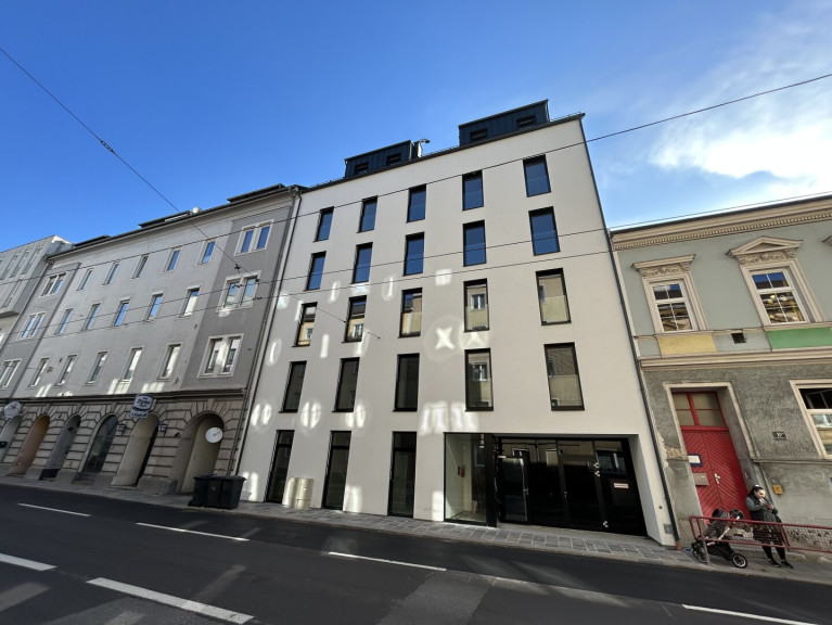 In zentraler Linzer Lage zwischen Landstraße, Musiktheater und Südbahnhofmarkt befindet sich das 2023 neu errichtete Wohnhaus in der Humboldtstraße 17 mit ebenso vielen Einheiten. Die Wohnung befindet sich im 4. OG des Gebäudes den Sie bequem mit dem Personenlift erreichen. Die Wohnfläche mit ca. 26,49 m² wird ideal genutzt und es steht sogar ein eigenes Schlafzimmer zu Verfügung. Die hochwertig ausgestattete Wohnung wurde mit Echtholz-Parkettboden und großformatigen Fliesenboden ausgeführt, verfügt über eine kontrollierte Wohnraumlüftung und ist darüber hinaus mit einer Tischler-Einbauküche (inkl. Kühlschrank, Backofen, Ceranfeld, Geschirrspüler und Mikrowelle) möbliert. Die Küche ist in der monatl. Miete bereits berücksichtigt.