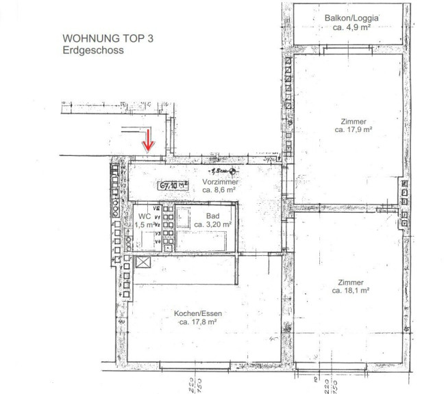Loggia: ca. 4,9 m² (hofseitig, nordöstliche Ausrichtung)