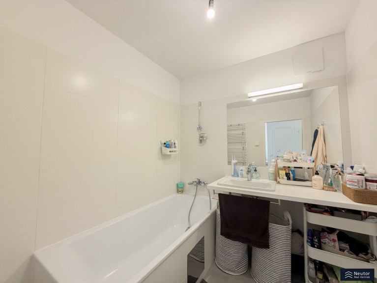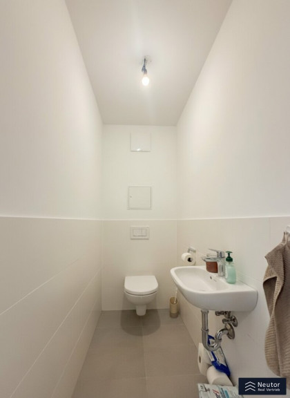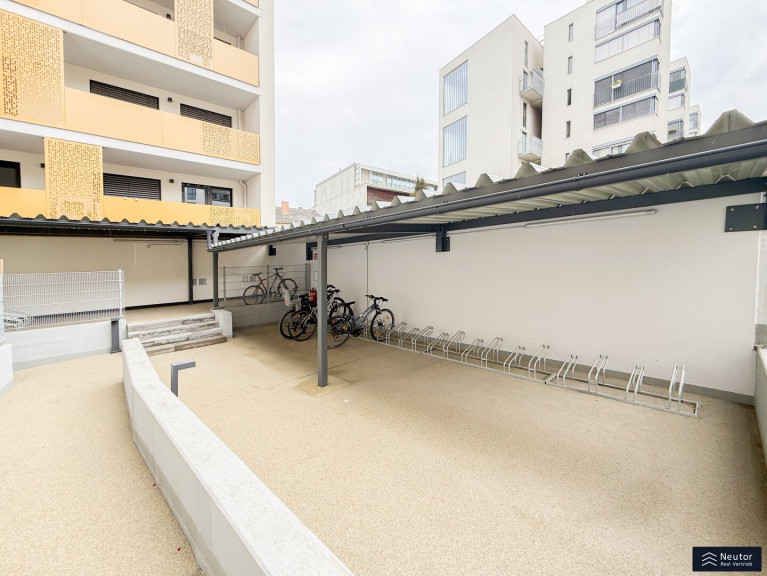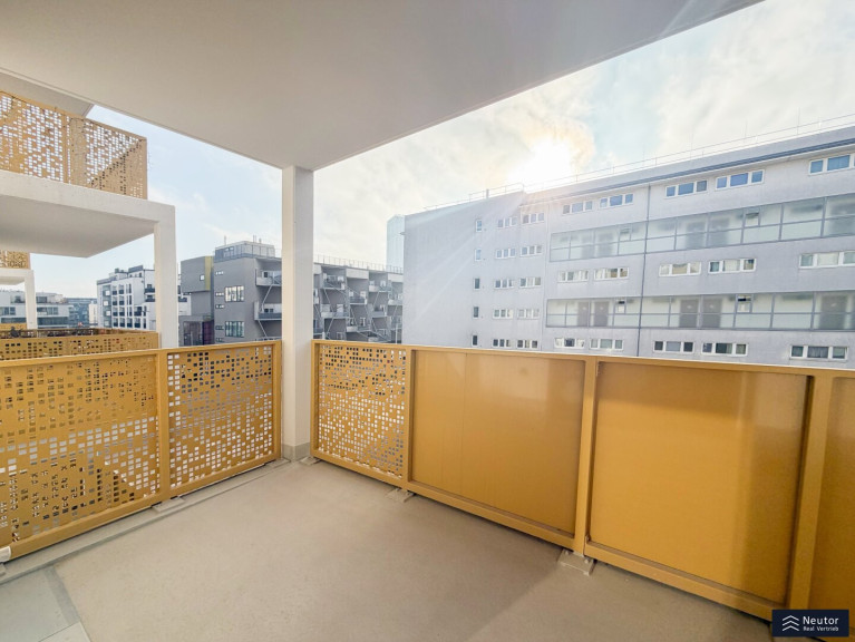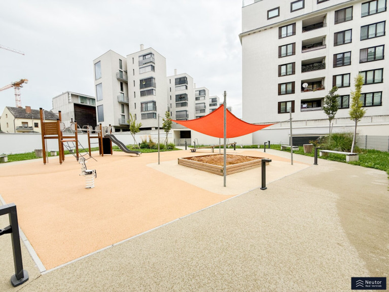 Diese moderne Neubauwohnung im vierten Stock überzeugt durch eine durchdachte Raumaufteilung sowie ein helles und freundliches Wohnambiente. Der funktional gestaltete Vorraum bietet einen einladenden Eingangsbereich und ermöglicht den Zugang zu allen Räumen der Wohnung. Für zusätzlichen Komfort steht ein separat angelegtes WC mit Handwaschbecken zur Verfügung. Das stilvolle Badezimmer ist mit einer Badewanne sowie einem Waschmaschinenanschluss ausgestattet und erfüllt damit alle Anforderungen des modernen Wohnens. Ein praktischer Abstellraum sorgt für wertvollen zusätzlichen Stauraum und trägt zu einem aufgeräumten Wohngefühl bei. Das Schlafzimmer präsentiert sich hell und bietet ausreichend Platz für Erholung und Rückzug. Das großzügige, lichtdurchflutete Wohnzimmer bildet das Herzstück der Wohnung und ist mit einer modernen Einbauküche ausgestattet. Hochwertige Geräte und ein zeitloses Design unterstreichen die Qualität dieses Wohnbereichs. Der Balkon erweitert den Wohnraum ins Freie und lädt zum Entspannen und Verweilen ein.Zur Wohnung gehört ein eigenes Kellerabteil, dass zusätzlichen Stauraum bietet. Für Fahrräder stehen mehrere gemeinschaftlich nutzbare Fahrradräume zur Verfügung. Familienfreundlichkeit wird in dieser Wohnanlage großgeschrieben: Ein Kinderspielplatz auf dem Grundstück sorgt für Spielmöglichkeiten direkt vor der Tür. Optional kann eine Garage angemietet werden, die eine sichere und bequeme Parkmöglichkeit bietet. Insgesamt vereint diese Wohnung hohen Wohnkomfort mit praktischer Ausstattung in zentraler und dennoch ruhiger Lage. Ein ideales Zuhause für alle, die Wert auf Lebensqualität und Funktionalität legen.