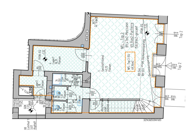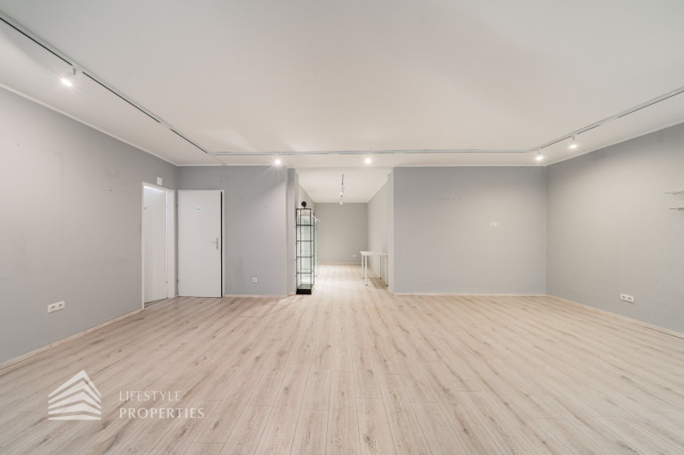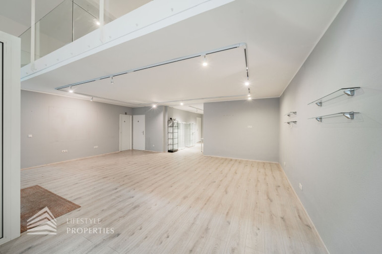 Das Erdgeschoss dieses lukrativen Lokals umfängt eine Fläche von ca. 69,34 m²; der Eingang befindet sich mittig zwischen zwei Schaufenstern. Sie betreten zu aller erst einen großen Raum mit ca. 43 m², in dem links die Treppe ins Obergeschoss hochführt und darunter mittels einer Trennwand ein kleiner Abstellraum entsteht. Gegenüber des großen Raumes befinden sich zwei verflieste Räume mit jeweils ca. 10,31 und 3,16 m². Hier im Erdgeschoss stehen Ihnen und Ihren Kunden eine Toilette mit Vorraum zur Verfügung. Einmal im Obergeschoss angekommen, welches insgesamt 89,47 m² beträgt, befinden Sie Sich in einer Art großzügigen Galerie mit einer Gesamtnutzfläche von mit ca. 48 m² und vier Fenster, die diesen Raum viel Licht spenden. Von hier gelangen Sie in fünf weitere Räume, welche teils als Vorraum sowie als Lagerräume konzipiert sind.