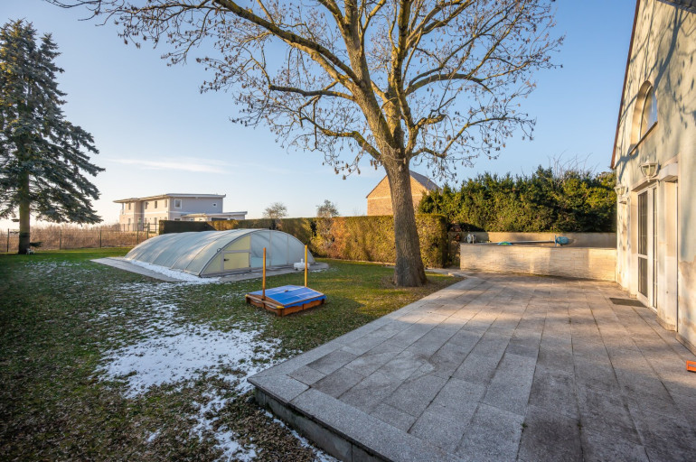 Garten-Oase: Südost-Ausrichtung mit großem Salzwasserpool und herrlicher Fernsicht über Wien.